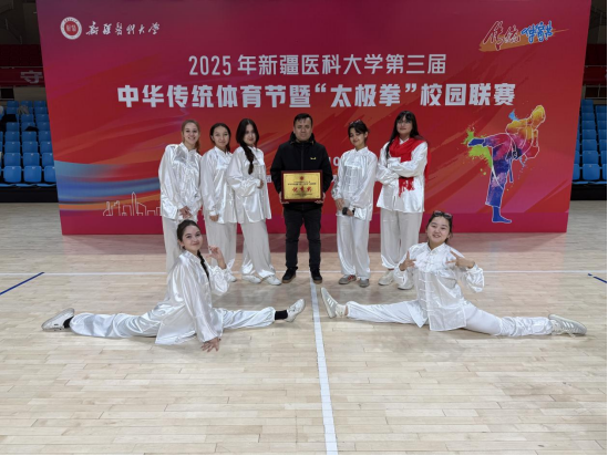 10月29日,2025年新疆医科大学第三届中华传统体育节暨“太极拳”校园联赛在学校体育馆隆重开赛。来自全校13个学院的学子同台竞技,国际教育学院代表队凭借出色表现斩获优秀奖,“以拳为媒”传递对中国传统文化的热爱。